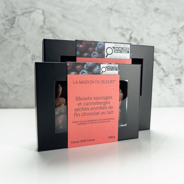 Profitez des bienfaits du chocolat noir aux bleuets et canneberges tout en vous sucrant le bec, les fruits séchés gardant les mêmes propriétés antioxydantes que les fruits frais